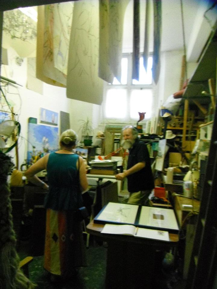 Chris N Wood artist amidst the clutter ! One of those rare times of the year when there is standing room for two. The photo was taken by fellow Artspace member, Alanah Barker, during this years Open Studios, Artspace Portsmouth UK. May 25th 2012