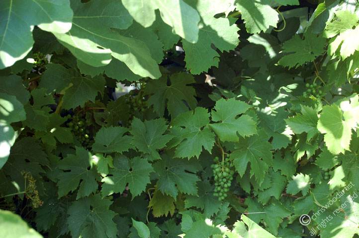 Chateau “chriswoodartist” is looking healthy – all we need now is plenty of sun and the odd drop of rain to swell those little beauties ! This year my vine has gone completely crazy and has tripled in size – let’s hope the grapes follow suit !