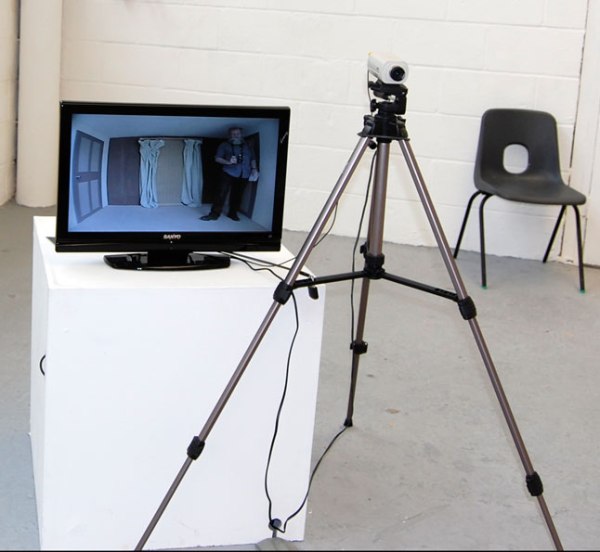 I was looking through some old photos that I took at the Winchester School of Art Degree Shows and came across “a little me” in a box ! I shot the photo from my chest whilst participating in an audio visual installation, featuring an “Ames Box” – sadly I don’t recall who made it or any other details – all I know was it was probably 3 years ago. The Ames box is not what it seems – it can distort our perception of reality – transforming us into giants or dwarfs. When I was a child I often wondered whether the people on television could actually see me, in my front room. My mother assured me that they couldn’t and I hapilly returned to my Meccano Set (a metal construction set for children in the UK) ! Here, a considerable number of years later, I was viewing myself, in a box, on television and what’s more I recorded it with the above photo ! Mystery solved – sometimes people on the television can see outside the box !
