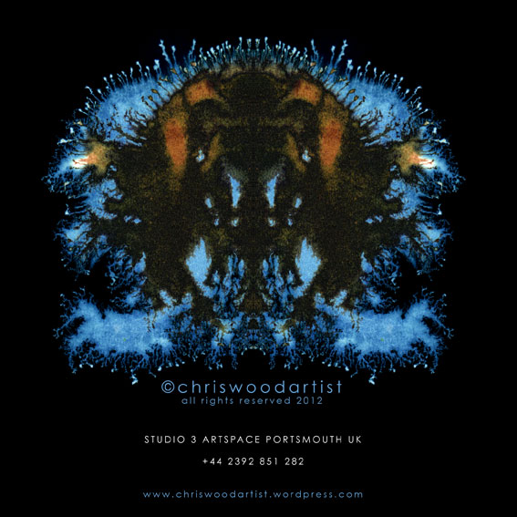 “Rorschach number 3” © chriswoodartist all rights reserved 2012. Winsor & Newton Ink on Cartridge Paper (plus a little help from Photoshop).