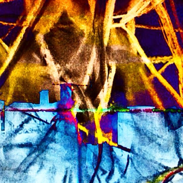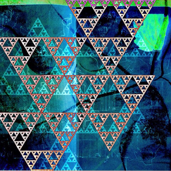 The first piece is a collaborative image made using repeat triangular patterns and drawn using “INKSCAPE” software by my student. The layers underneath are from my sketchbook and include imagery from when I did a “creative drawing” / psychology workshop in the Guildhall Square with students from Portsmouth Grammar School.