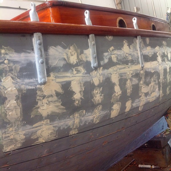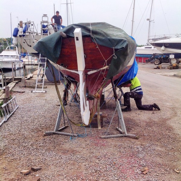The keel will be bolted back on, hopefully next week or possibly the week after. Then lots of filler will be reapplied to the joint between the ballast keel and the wooden keel. This will then be sanded down and faired so there is an even transition between the two.