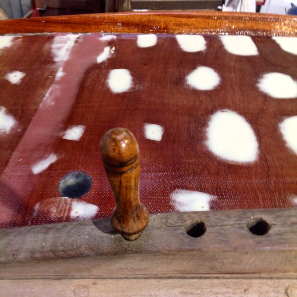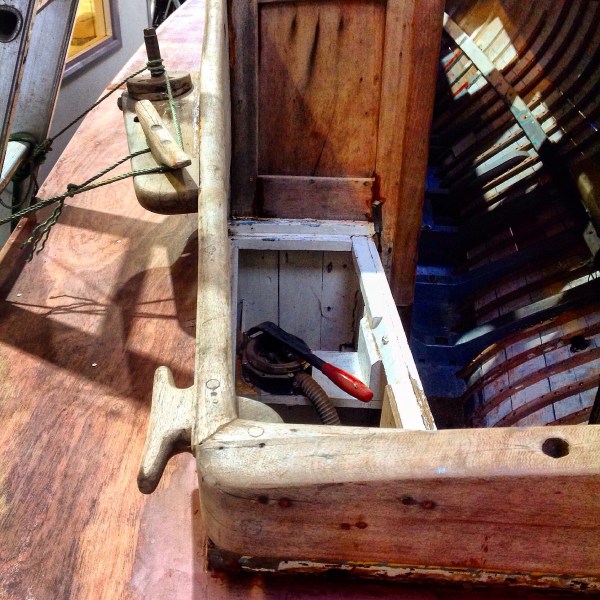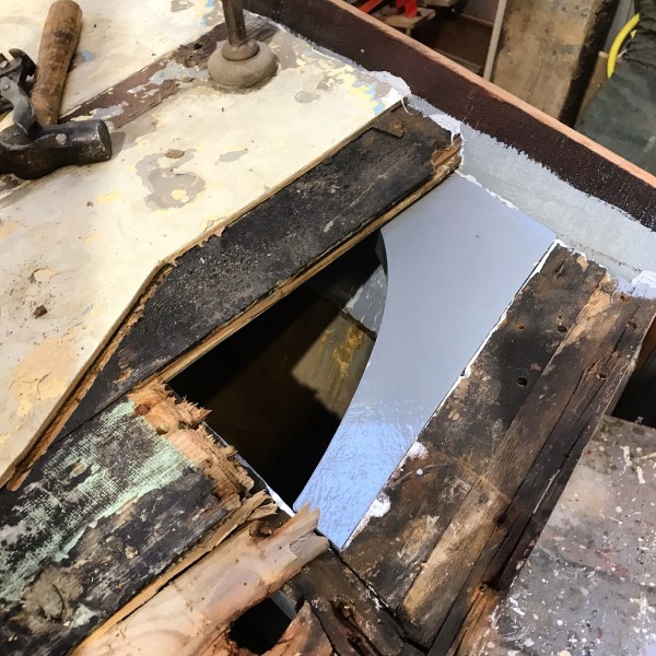 Another area of interest is the top section of the transom which was repaired but not successfully as not all the rot was cut out and in later years it returned – this has now been rectified by removing half the transom !