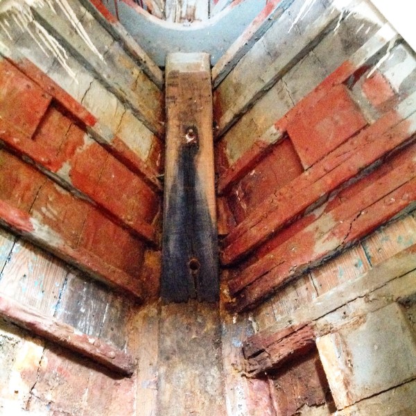 Leading Winds old knee is cut back and awaits a new laminated extension that will become the new mast step