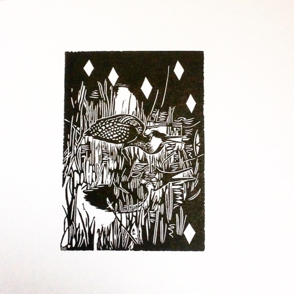 Botaurus Stellaris” Bittern : Endangered Species Copyright ChrisNWood All Rights Reserved Limited Edition Linocut