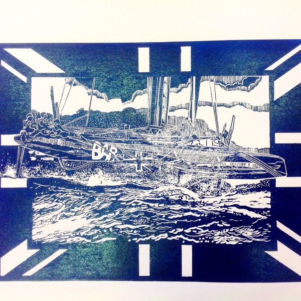 The Ship Anson Limited edition Linocut copyright Chris N Wood All Rights Reserved 18.6.19