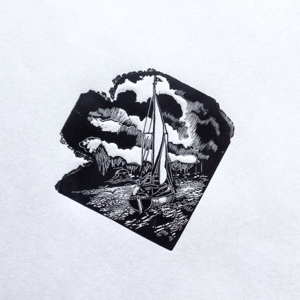 Deben 4 Tonner “Leading Wind” wood engraving on Japanese Shoji Paper copyright Chris N Wood all rights reserved. I was honoured to be selected to show this wood engraving at the NATIONAL ORIGINAL PRINT EXHIBITION SUMMER SHOW AT BANKSIDE GALLERY LONDON UK 18.9.19-29.9.19