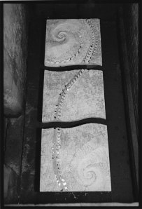 NB In background : “aqua vitae” : one of three 1 metre square plaster panels.