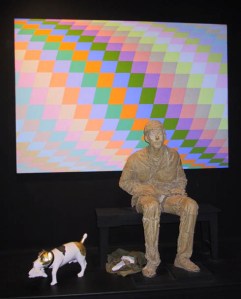 An “intervention” piece created for Portsmouth City Museum & Art Gallery. This work interacts with a life-size ceramic figure of Peter Palmer and a painting by Bridget Riley, adding a narrative element through a plaster Jack Russell and associated ephemera.